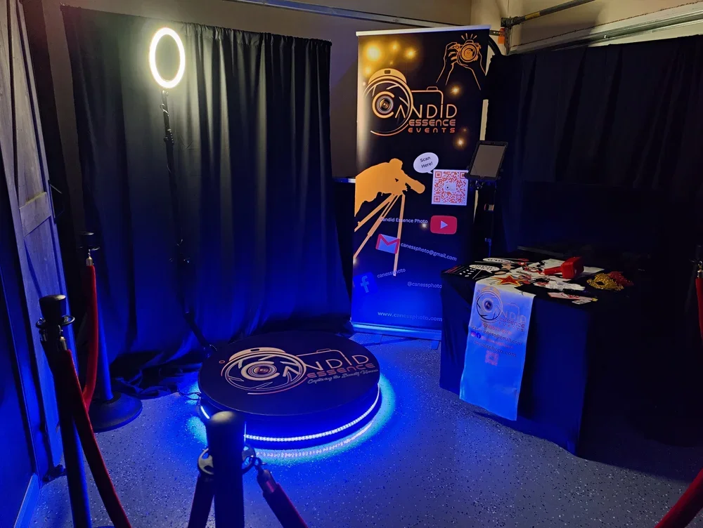 The 360° Photo Booth - is an experience designed to capture 360° high-resolution videos. Event guests step on a platform where a high-end camera attached to a revolving mechanical arm rotates at high speeds 360 degrees around your guests. While rotating, it uses programmatic movements and captures videos of up to 120 frames per second which Candid Essence cloud-based platform processes instantly using proprietary AI technologies. Take your spin today!